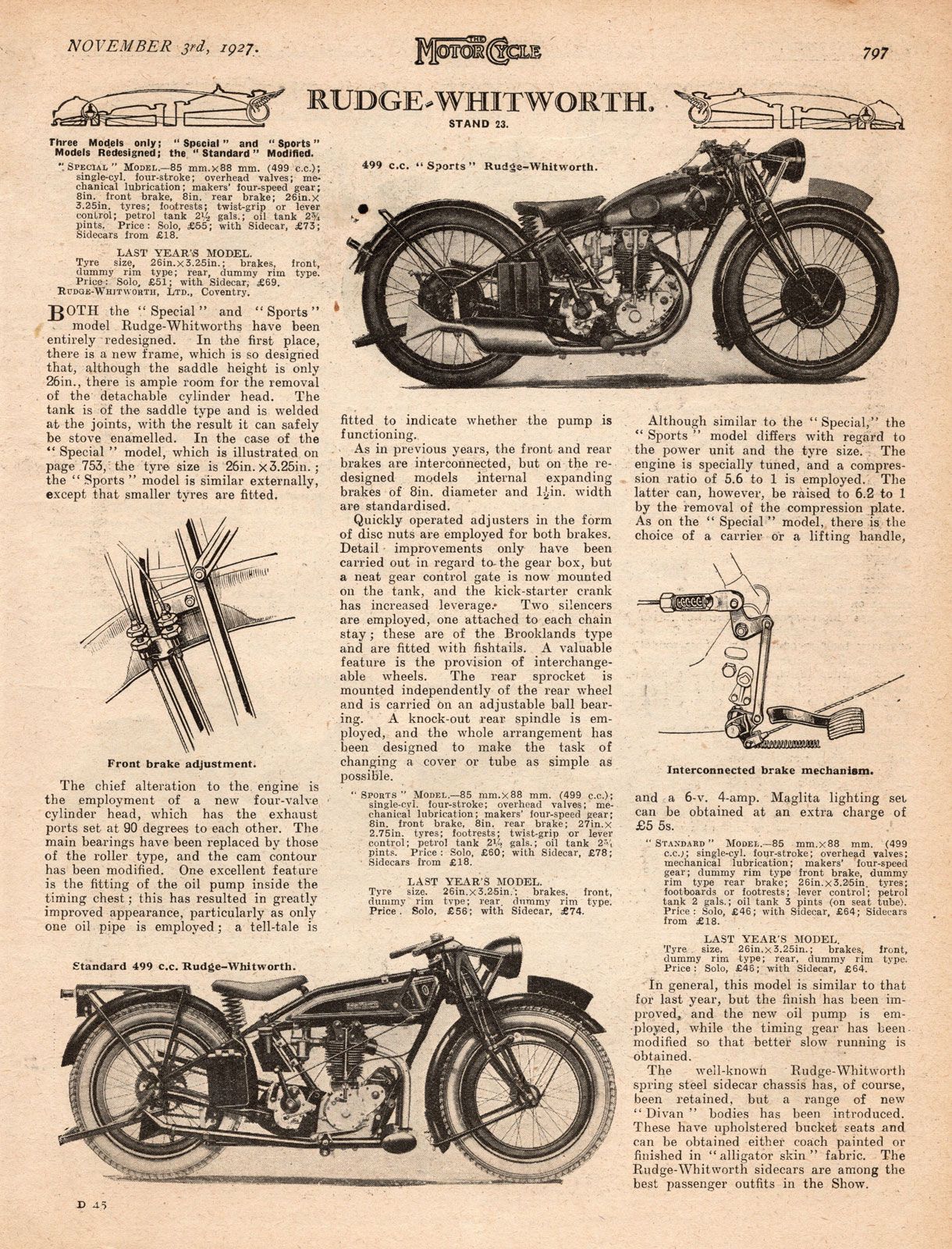 Rear brake lock for use when a sidecar is fitted. Footboards.