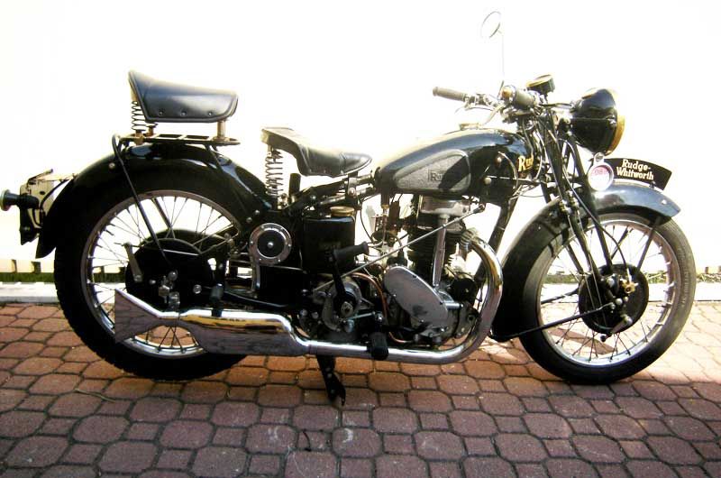 4 valve 499cc with cast iron open valve cylinder head, parallel inlet valves and parallel exhaust. Rockers carried on cast pillars.18mm side plug. Carburetter flange sits proud of cylinder head finning. Rear mounted round ML magneto and forward mounted short Miller DM3G dynamo (when lights fitted). Oil feed to rear of cylinder. Cast oblong plain rocker box.