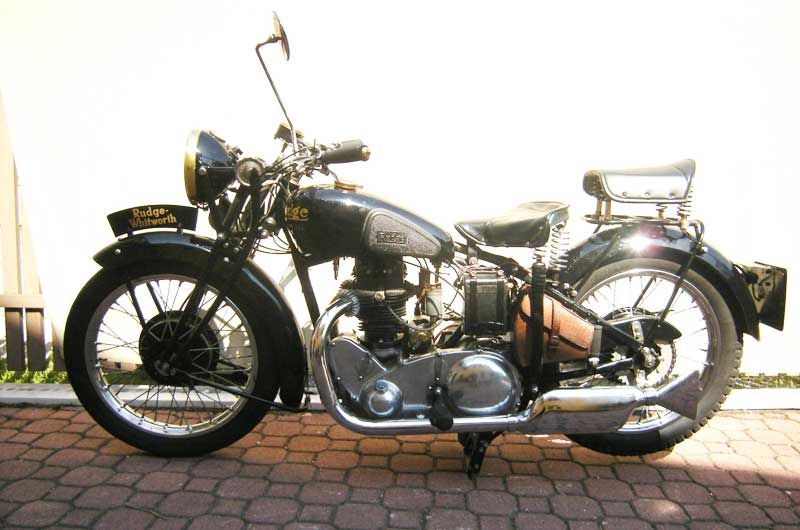 Twin 1 _” low-level downpipes into Rudge ‘can’ type silencers and 6” fishtails.