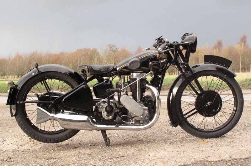 4 valve 499cc with iron open valve parallel inlet & parallel exhaust cylinder head. Rockers carried on cast pillars. Cast alloy plain rocker box.18mm central plug. Rear mounted round ML magneto. Forward mounted Miller DM3G short type dynamo with bearing housing visible. Oil feed to rear of cylinder.