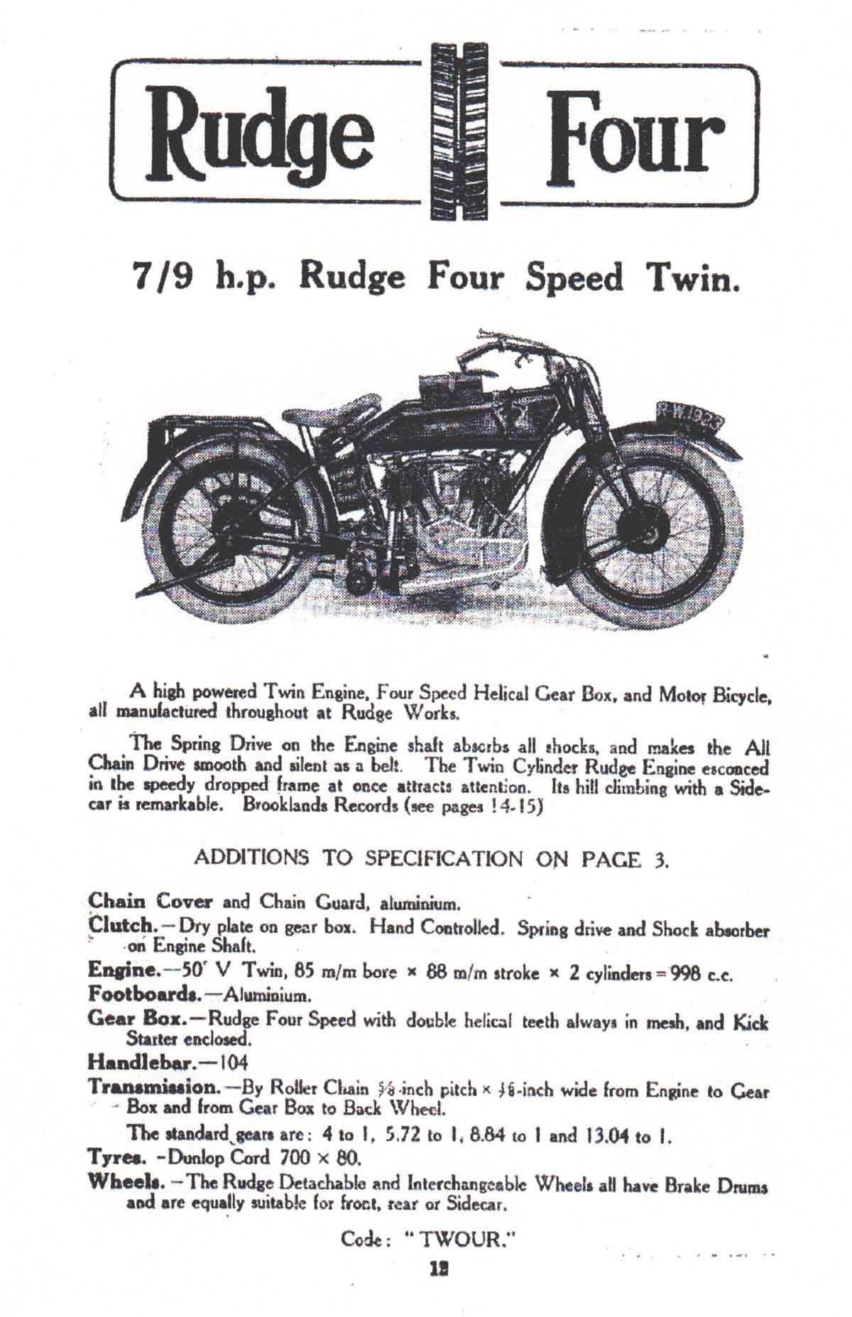 Lights. Rudge Touring Sidecar, Rudge Light Sidecar or Rudge Sporting Sidecar.
